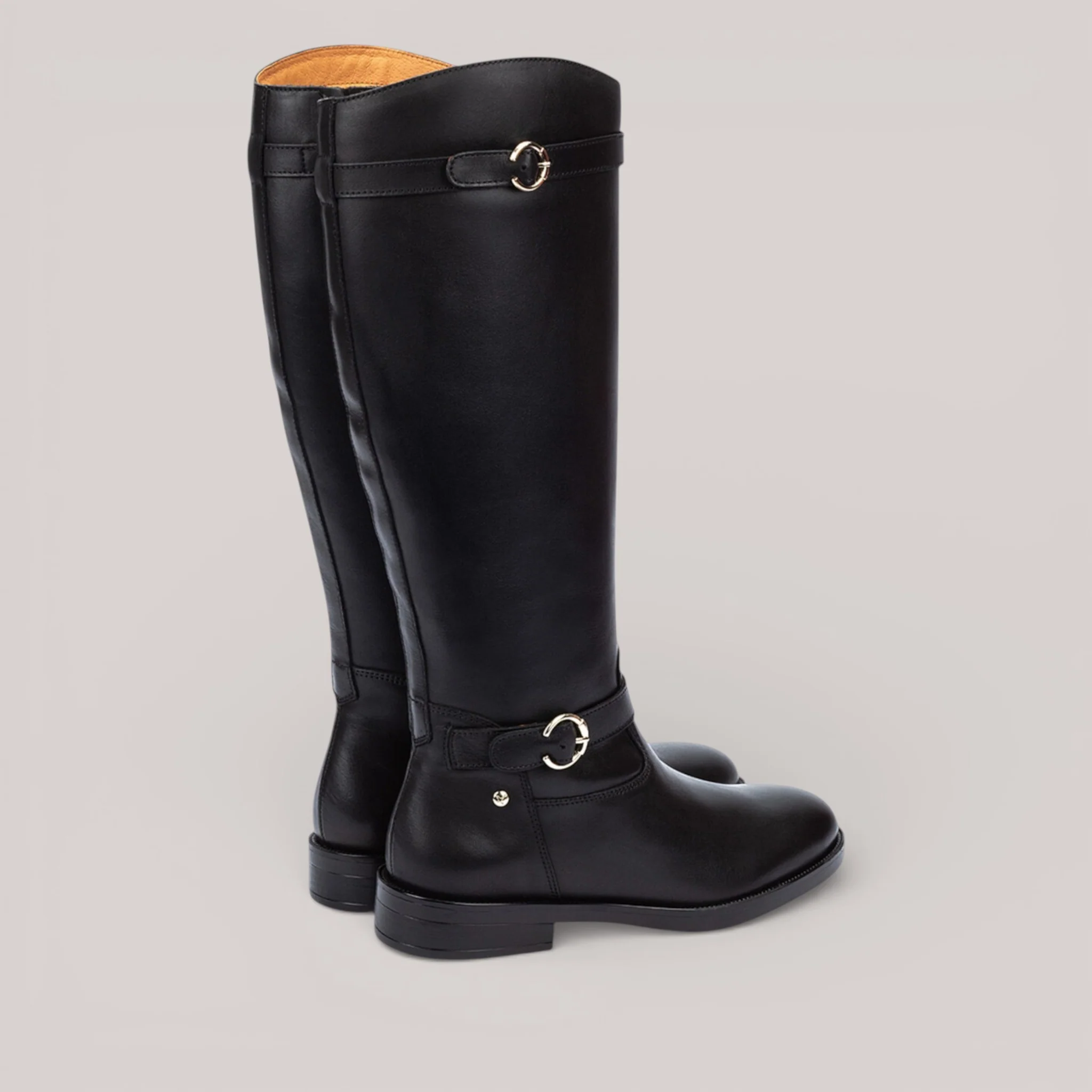 These refined tall boots marry timeless design with practical elegance. Crafted from premium cowhide leather with a comfortable blend lining, they feature distinctive decorative buckles inspired by classic riding aesthetics. A 3 cm heel and smooth zip closure make them effortlessly wearable across your winter wardrobe.
